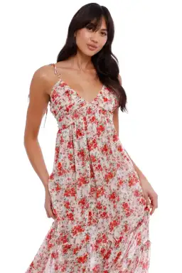 The Misa LA Fallon Dress is a perfect choice for a garden wedding. With a stunning silhouette, it features a v-neckline, a slightly cinched waist, and a tiered maxi-length floral skirt. The dress adds an elegant touch with its unlined design.