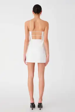 Elevate your wardrobe with the Adalynn Cotton Mini Dress in Ivorys. Designed in signature MISHA fabrication, this dress is a slim fit strapless style. The Adalynn features a unique strap detail and open back design.
