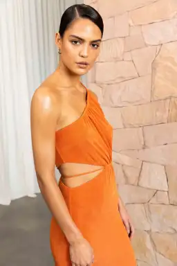 Stunning Adara dress By Misha in Golden Apricot. Stand out at your next event