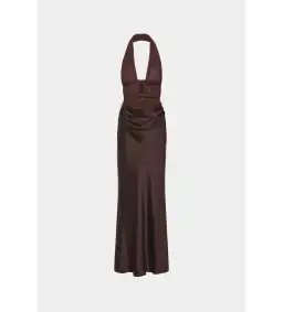 Misha Collection The Celine Satin Maxi Dress Umber Brown Size AU 10