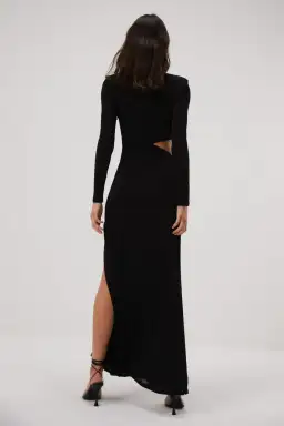 An elegant flowing silhouette, balanced with asymmetrical cut outs and a side leg split. Perfect for evening soirees and events alike.- Slim fit bodycon shape- Fishtail skirt shape- Metal trim on bodice and skirt- Split at side seam- Floor length.- Fully lined garment- Centre back invisible zipper