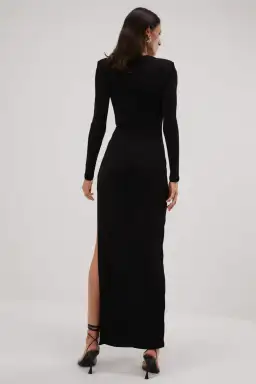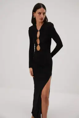 The Edita slinky gown is a sleek and sophisticated number for your next evening event. With centra keyhole paneling, Edita is slimming on the figure, accented with a side split to allow for movement.