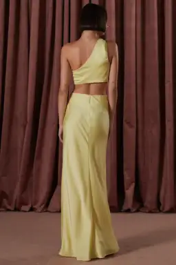 Move like liquid in the Kristin Satin Gown. Featuring twist detailing and striking cutouts at the waist, Kristin is sure to help you make an entrance at your next event.