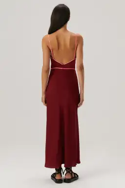- Bias cut- Cut out feature at waist with rouleau tie front