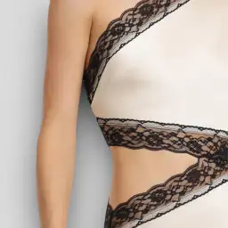 Introducing the Jillian satin gown, a feminine number for your next special occasion. Its fishtail skirt creates a flowing silhouette, detailed with lace trimming for a delicate touch.