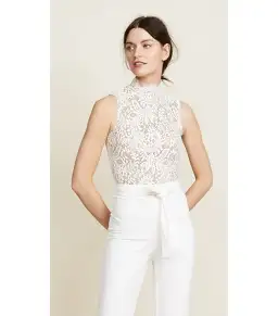 Misha’s best-selling pantsuit is back and in business! Crafted from a divine embroidered black lace detailed bodice, it features a high scalloped edge neckline and sleeveless design. High waisted pants create a flattering shape in a softly textured, woven crepe fabric. Make a statement as you rent this jumpsuit for night out to town or work function wear.