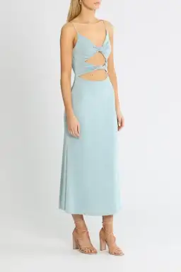 Experience the allure of the daring Oscar Dress by Misha, featuring a flirty silhouette with waist cut-outs. This dreamy blue dress boasts knot detailing that perfectly frames the bust and waist area.