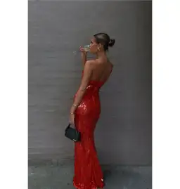 The Sapphire Sequin Maxi Dress in Red, event-dressing redefined. She is elegant with her maxi silhouette, yet has a fun sensibility through her bold colour. Each sequin catches the light- emulating the soft movements of water. Sapphire is also daring with her plunging neckline and low-back. Style her with a strappy heeled sandal to finish the look.