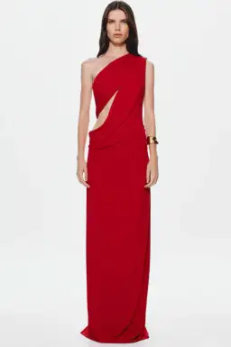 The Solstice Cupro Maxi Dress in Cherry Red.