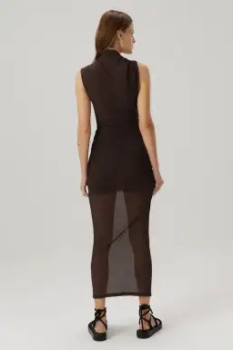 Set your eyes on Tillie. Cut from lightweight mesh, this dress features an asymmetrical neckline with gathers, paired back with complimentary gathers at the shoulders and side seams. Tillie is the midi dress that wants to be worn, a key staple for your next dinner date, or go-to piece to throw back with calf length boots for day-to-day styling.