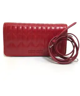 Miu Miu Matelasse Flap Clutch with removable strap Red