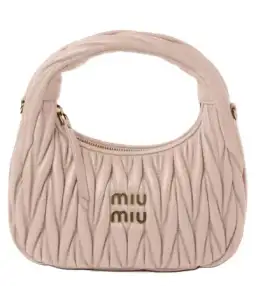 The Wander bag is reinterpreted season after season, becoming an iconic accessory of Miu Miu collections. Made of matelassé nappa leather, the bag is characterized by the sophisticated, three-dimensional effect created by the refined workmanship. The hobo shape, blending retro inspirations and contemporary elegance, becomes a new synonym of modern femininity