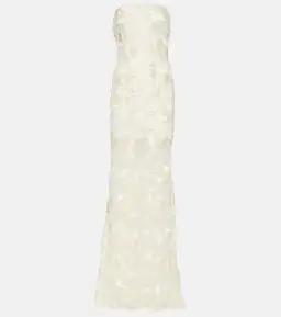 Rotate Birger Christensen upholds its mission to fill closets with unique designs that can be found nowhere else. Ethereal brides will love this sheer midi dress with all-over floral embroidery and a strapless silhouette.