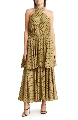 Mon Renn Roselyn Midi Dress Green Polka Dot Print Size 10