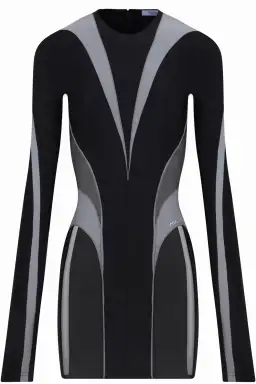 Mugler Reflective Mesh Long Sleeve Mini Dress Black/Silver