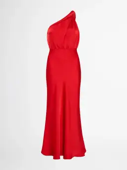 Decidedly Romantic - Introducing the Naomi Maxi Dress, showcasing a slim fit cut, fixed waist and a one shoulder self fabric padded strap. Pair with our Temptress Earrings to complete the look.