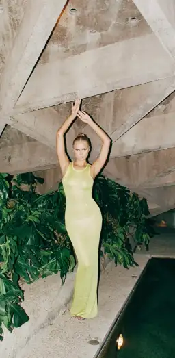 The Natalia Dress in Chartreuse Sequin by Asta Resort.