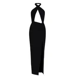 Dream of a world full of adventures with this Natalie Rolt Sasha Gown with a beautiful white finish all throughout the silhouette. A fully lined, surplice bodice with a crossover neckline and rounding back with clasp closure, leaving half the chest and stomach in full view. A combination of blended polyester and spandex, shapes the dress with an adjustable ruched front that you can tie according to your wish. A lightweight woven maxi dress that leaves no head unturned.