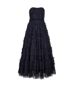 Needle and Thread Strapless Dot Shimmer Gown Black 12