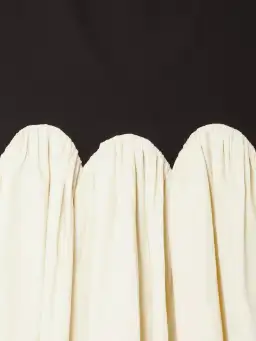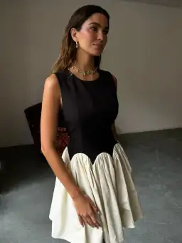 A panelled corset-style top, that cinches your waist to create a beautifully structured outline, which then drapes, from the scalloped edging, into a gorgeous pleated skirt.Machine washable.