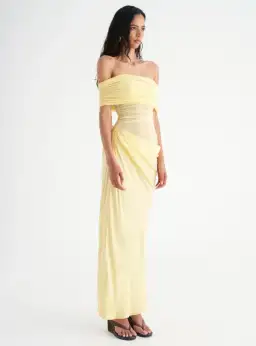 Benni Nico Off Shoulder Midi Dress Yellow Size 12