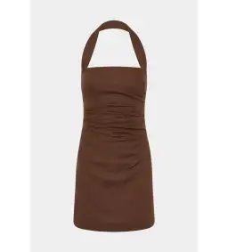 The Noemi Halter Mini Dress in Chocolate Brown by SIR. is a chic and minimalist piece, ideal for warm-weather occasions. Crafted from midweight linen, it offers a relaxed fit that gracefully drapes over the body.