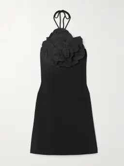 The Odetta Halter Mini Dress in black is a charming dress, tailored with princess seams and a fitted bodice to form a flattering silhouette. Featuring a halter neckline with floral applique, the A-Line dress is designed to enhance and accentuate the cinched waist. At the back, a zip fastening and back split adds comfort and style. This dress is fully lined, perfectly chic for your next event.