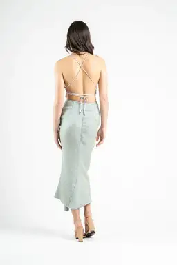 With a slim fit silhouette that hugs the body and accentuate the figure, cut on the bias this midi falls seamlessly down the hip to mid calf.