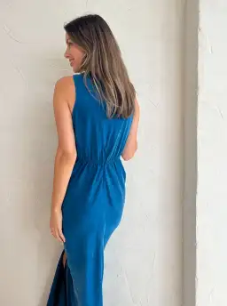 GORGEOUS dress that made me feel amazing. Beautiful Egyptian blue, this dress photographs beautifully and will have you receiving compliments all night long. The softest silk fabric with a floaty feel makes it a comfortable, elegant and delightful wear.