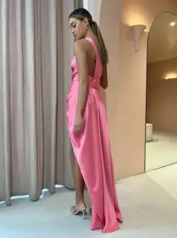 Celebrate life's special moments in the best selling Philly Maxi Dress in Punch from One Fell Swoop.Crafted from a lustrous satin fabrication with a slight bubble texture, this maxi is designed to flatter the femme silhouette. Designed with an elegant one shoulder neckline, it features a drape that swings across the torso to the right hip, falling fluidly into an asymmetrical skirt.