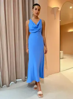Crafted from a lightweight dimensional jacquard stripe, this midi is designed to hug and flatter the femme form in all the right places. Draped softly at the neckline the Zoe Midi features two thick straps that cross at the back and is perfectly tailored with accenting pleating under the bust and at the left hip to accentuate the curve of the hipline.
