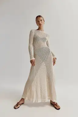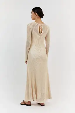 DISSH Ophelia Long Sleeve Crochet Maxi Dress Natural Size 10 / M