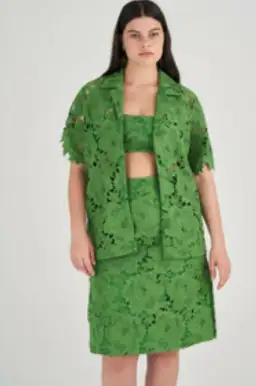 Oroton Lace Camp Shirt in Green in Size AU 14