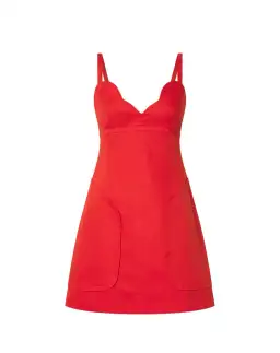 Oroton Scallop Detailed Mini Dress in True Red Size 4