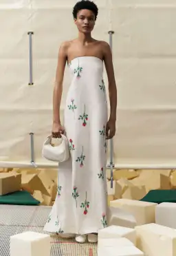 Embrace timeless elegance with Oroton’s Rosebud Gown in antique white. Crafted from structured heavy linen, this strapless A-line silhouette features the season’s delicate Rosebud print, side seam pockets, and an organdy underlay for a sculptural finish. Perfect for any special event.