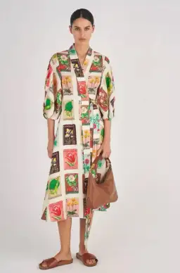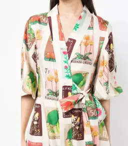 Oroton Stamp Wrap Midi Dress Multi Size 16