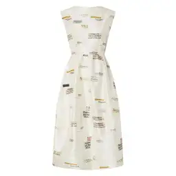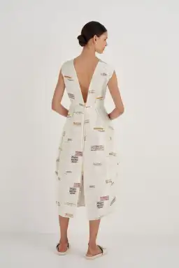 Printed with a sophisticated vintage label design exclusive to Oroton. Creating a classic yet contemporary silhouette, this feminine midi dress features a structured bodice, figure-flattering hourglass skirt and high crew neck.
