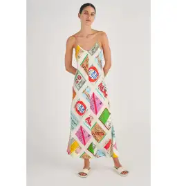 Oroton Ticket Print Slip Maxi Dress Multi Size AU 14
