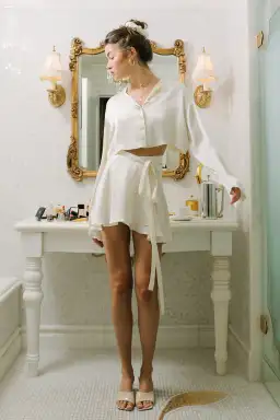 Ballerina Wrap Skirt and Drop Shoulder Reversible Blouse Set Ivory Size 8
