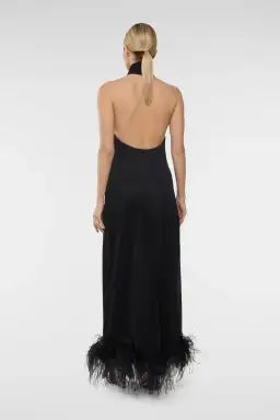 The Lumière Plumage SS24 turtleneck dress is a luxurious blend of sophistication and sensuality. It features a high neckline, made from the finest fabrics and cut to fit the body perfectly, with a tantalizing open back in a stunning black and toffee color. A timeless and eye-catching dress created for the most discerning fashionistas.
