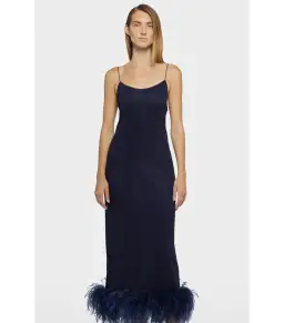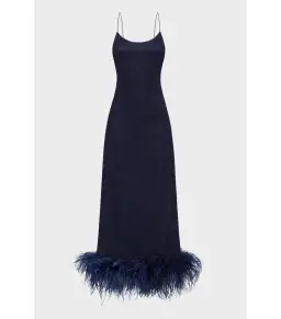 Oseree SS25 Lumière Plumage Slip Dress in Night Blue Size AU 6