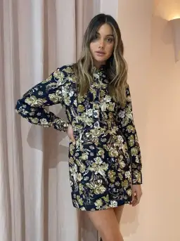 Long sleeve panelled mini dress in a premium linen blend in the exclusive Palermo print.