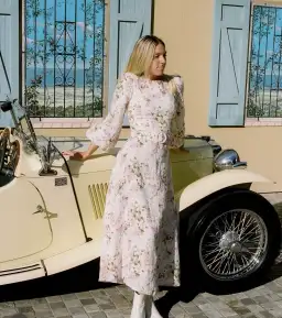 The Melrose Dress is a midi-length dress crafted from 100% Premium Linen, printed in our exclusive, hand drawn Ode to Pink print. The Melrose Dress is a Palm Noosa classic silhouette. Featuring a flattering A-Line waist, floating hem and statement sleeves.