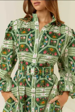 The Noddy Dress is a maxi dress crafted from 100% Premium Linen. A Palm Classic silhouette, the Noddy is an all-year-round go-to. Printed in our exclusive, hand-drawn Floral Tile print. Featuring voluminous blouson sleeves with elasticated cuffs & a statement eyelet belt. Pair the Noddy with your favourite crisp white sneaker for a daytime look, or your favourite Winter boot to elevate your look into the evening.