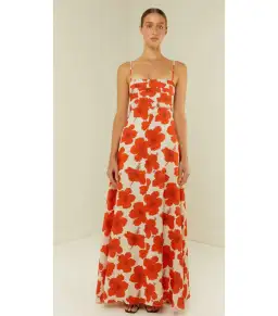 Palm Noosa Primrose Maxi Dress Red Hibiscus Size AU 10