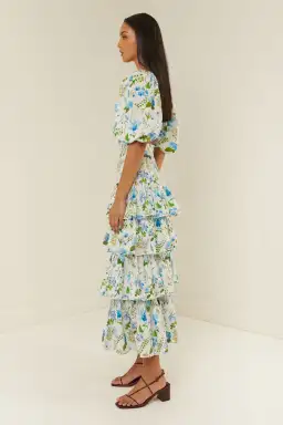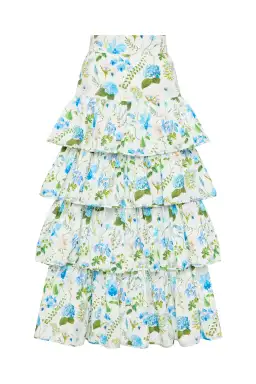 The Triton Skirt is crafted from 100% Cotton Poplin and printed in our hand-drawn Blue Orchid print. Showcasing a fitted waist with exaggerated tiered frills this maxi is an event favourite. Pair with our Horizon Topand strappy heels for added drama.