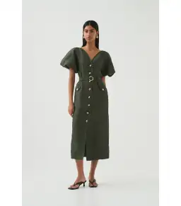 Aje Paloma Utility Midi Dress Midnight Green Size 10