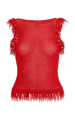 Paris Georgia Fringe Knit Top Red Size S / AU 8