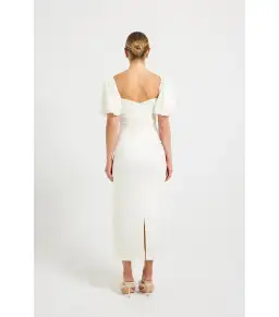 The Aurelia Sleeve Midi by PASDUCHAS is crafted from stretch linen fabric, featuring an exclusive oversized floral placement print. This form-fitting midi dress has a square-cut neckline and fits through the waist and hips before falling to a midi-length hem, finished with puffed short sleeves. The piece is fully lined and secured at the centre back with an invisible zipper.