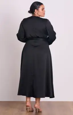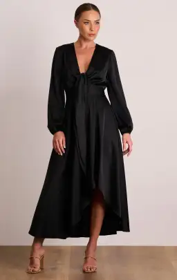 Made from mid-weight satin back crepe. Its lustrous surface makes this midi dress perfect for any event. Derived from the original Cherish Tie Midi silhouette, this style features a deep V neckline tied at the centre front bust, offering flexibility in fit and flattering the décolletage, while relaxed long sleeves balance the look.